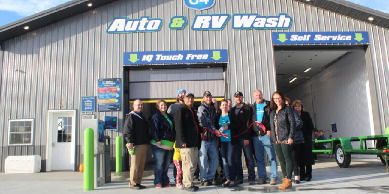A Ribbon cutting ceremony was held on Thursday, October 11, 2018 during a week-long open house celebrating the grand opening of Highway 84 Auto & RV Wash in Hartington, NE. The new 2 bay car wash features an IQ 2.0 Touch Free Automatic and a self-service bay is owned by Jackrabbit Ventures LLC, which features the first initials of the owners’ names: Jody Koch, Chrys Koch, Keith Eickhoff, Ryan Eickhoff and Brandon Eickhoff. The group’s extensive business background and the discussions about the progress in the town of Hartington kickstarted the beginnings for a new car wash.