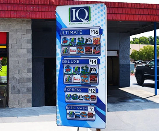 - Self-Serve Wash Option Signs: Promote all your wash options with our selection of colorful, customizable placard signs